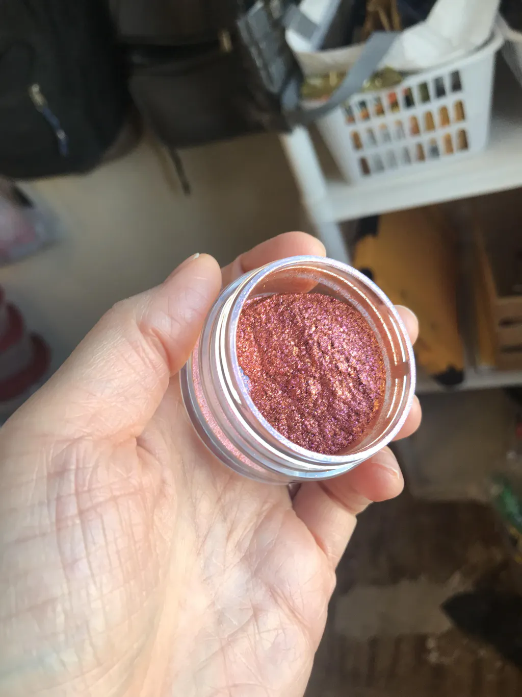Super sparkly duochrome from pink to pale tangerine and several things between.